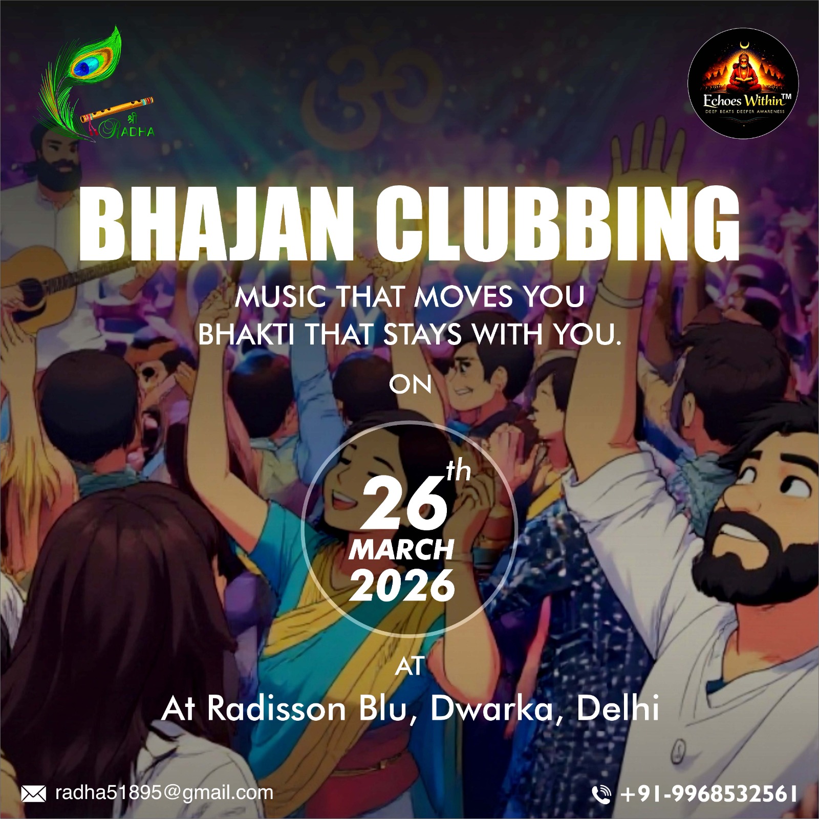 We believe in the power of collective healing through Bhajan Clubbing — a unique concept that blends tradition with modernity, allowing you to experience bhakti in a new and refreshing way.